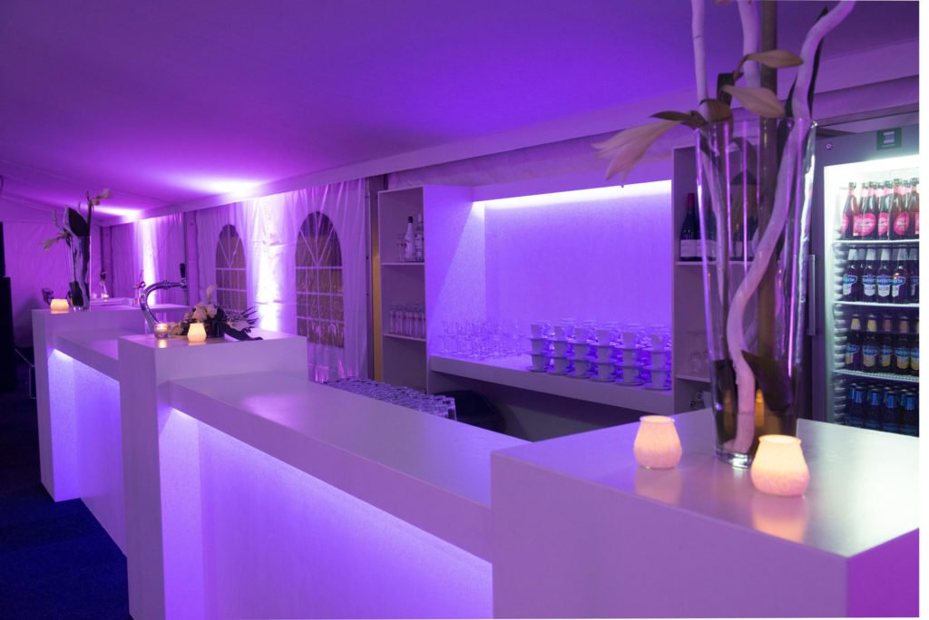 Van vloerkleden tot backdrop, van draperieën tot sfeerverlichting. De juiste sfeer maakt het verschil. Met warme verlichting, een goede opstelling, stijlvolle aankleding en voldoende zitplekken creëert u een omgeving waarin collega’s zich op hun gemak voelen. Zo ontstaat vanzelf een ontspannen en feestelijke sfeer waarin verbinding centraal staat. We letten op alle details zoals de sfeerverlichting, statafels, andere tafels en stoelen op de plek en in een opstelling die u wenst. We kleden de tafels desgewenst aan met tafelkleden of statafelhoezen. De kleuren mag u uiteraard zelf aangeven en passen ons interieur aan op uw thema. We zorgen voor een passend bloemetje op tafel voor extra sfeer en we leggen op verzoek een mooie dansvloer aan.