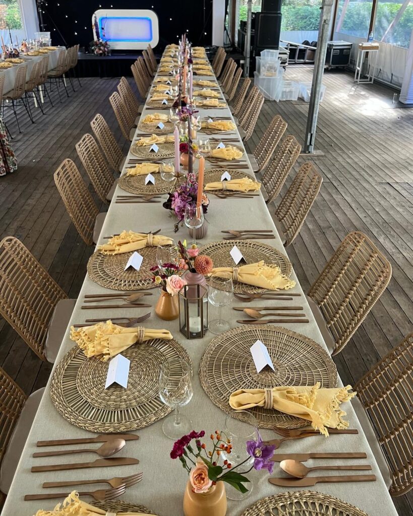 Geen standaard meubilair, maar stijlvol, verzorgd en passend bij het geheel. Kies uit verschillende soorten stoelen, tafels, loungesets en statafels. Denk ook aan handige extra’s zoals een bar, buffettafel of zelfs een dansvloer. Alles is mogelijk.