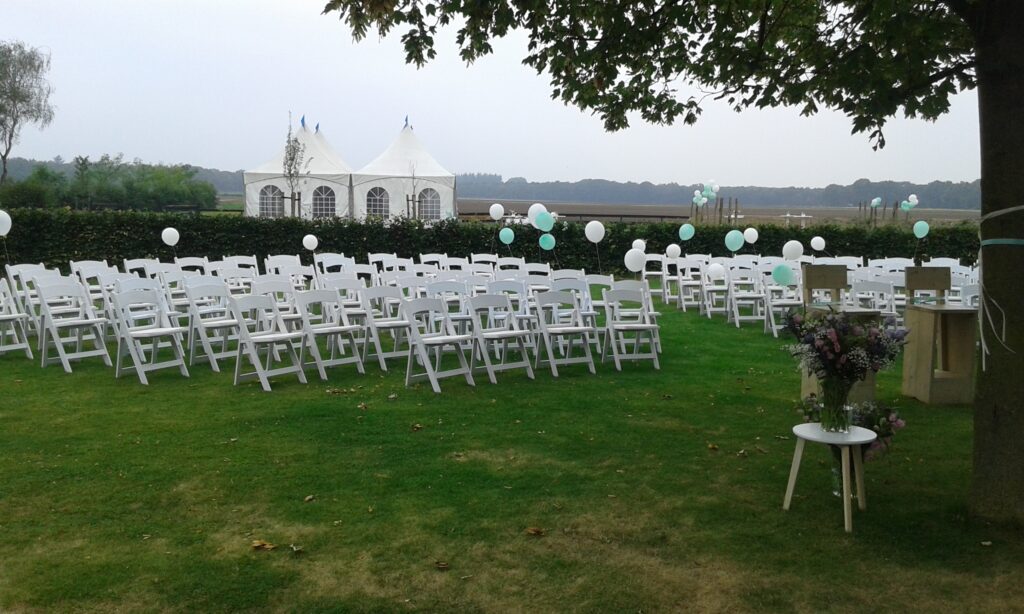 Bij een bruiloft komt veel kijken. Denk aan een overdekte ceremonie, een sfeervolle borrelsetting en natuurlijk voldoende zit- en tafelmogelijkheden voor het diner of feest. Wij leveren partytenten in alle formaten, romantische verlichting, witte stoelen voor de ceremonie en chique tafels voor het diner. Alles perfect op elkaar afgestemd.