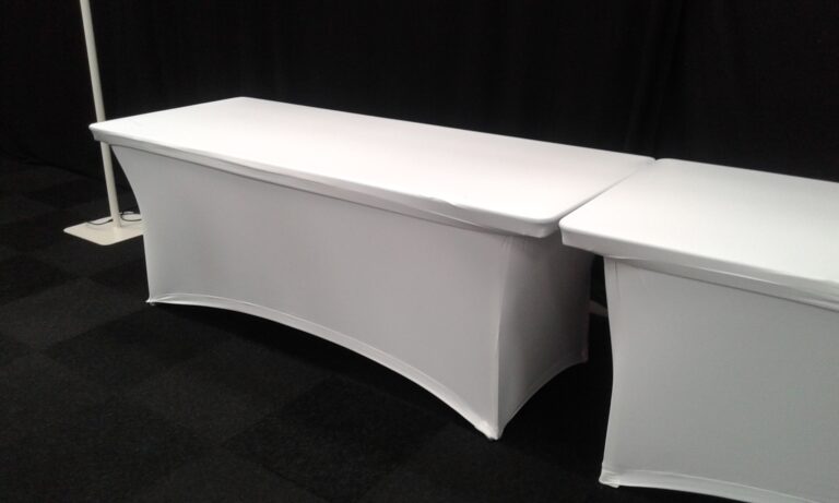 Deze strakke tablecover worden vaak gebruikt bij tafels van 80 x 200 cm. Deze tablecover is door zijn stretch materiaal eenvoudig over deze lage tafel heen te schuiven. Tablecovers zijn er in de kleuren wit en zwart.