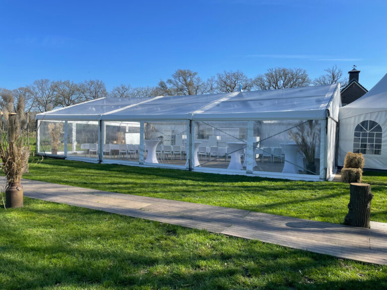 Luxe uitstraling van een aluminium tent van 10 x 12,5 meter.